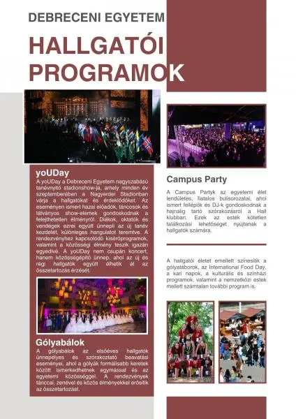A Debreceni Egyetem hallgatói programjai